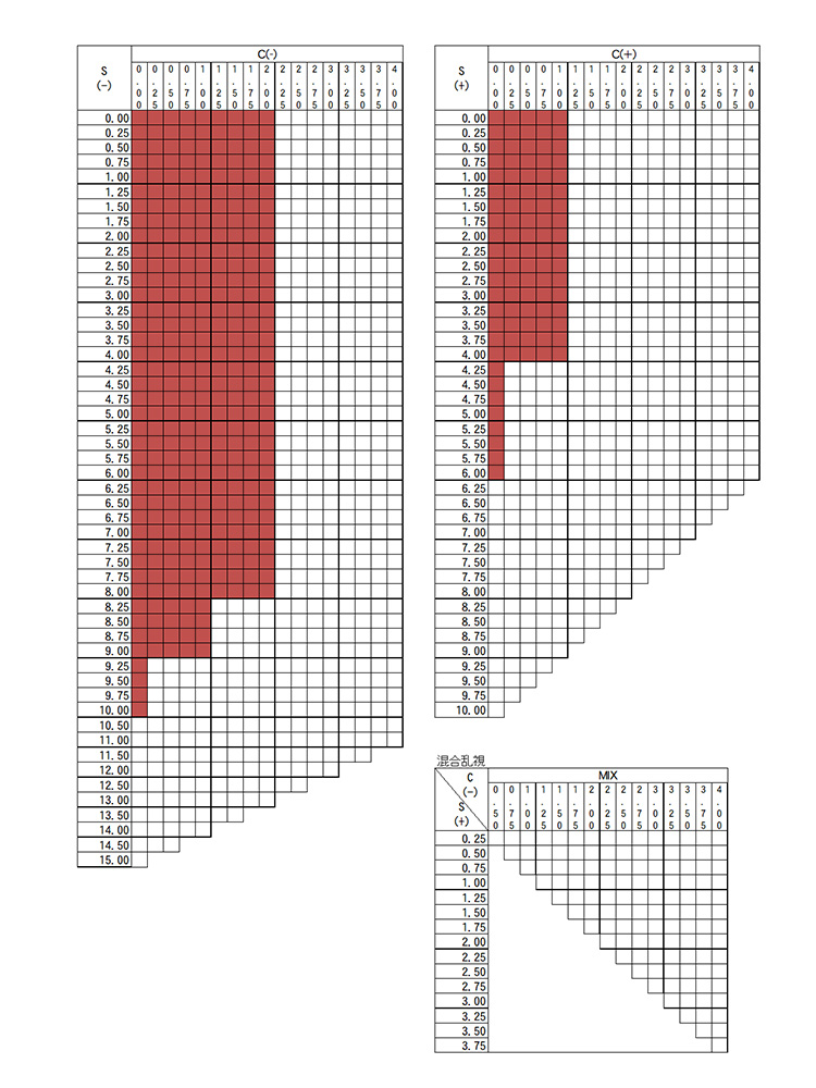 メガネセット用薄型等オプションレンズ :HOYA SL903VS(汚れが付きにくいコート) 1.67 非球面 販売価格 5,000円(税込み) 会員価格 (税込み) 通常価格 (税込み) 在庫 商品コード op3 JANコード レンズデータをお知らせください 下記のフォームに入力する 処方箋を送る 今、お使いのメガネを送る(同度) 来店して検眼する R (右) SPH R (右) CYL(乱視) R (右) AX(乱視軸) L(左) SPH L(左) CYL(乱視) L(左) AX(乱視軸) PD(瞳孔距離) 使用用途 遠用 近用 数量 - + カートに入れる カテゴリー メガネセット用 薄型等オプションレンズ メーカー HOYA ブランド SL903VS 赤くハイライトしてあるところがメーカー在庫範囲になります。それ以外の度数は特注範囲となり、別途+4,000円になります。特注は制作に約1週間かかります。 ツイートする シェアする RECOMMENDEDおすすめアイテム メガネセット用薄型等オプションレンズ :HOYA NL167VS レイガード(汚れが付きにくいコート) 1.67 非球面 12,000円(税込み) メガネセット用薄型等オプションレンズ :HOYA NL16VS レイガード(汚れが付きにくいコート) 1.60 非球面 10,000円(税込み) メガネセット用薄型等オプションレンズ :伊藤光学 メニモ1.74AS ENA(HEVカット)(傷がつきにくいコート) 1.74 非球面 16,000円(税込み) メガネセット用薄型等オプションレンズ :伊藤光学 メニモ1.67AS ENA(HEVカット)(傷がつきにくいコート) 1.67 非球面 9,000円(税込み) メガネセット用薄型等オプションレンズ :伊藤光学 メニモ1.60AS ENA(HEVカット)(傷がつきにくいコート) 1.60 非球面 7,000円(税込み) メガネセット用薄型等オプションレンズ :HOYA SL905VS(汚れが付きにくいコート) 1.74 非球面 10,000円(税込み) メガネセット用薄型等オプションレンズ :HOYA NL174VG-H(傷がつきにくいコート) 1.74 非球面 18,000円(税込み) メガネセット用薄型等オプションレンズ :伊藤光学 アンテリオールENA(傷がつきにくいコート) 1.74 非球面 12,000円(税込み) メガネセット用薄型等オプションレンズ :HOYA NL167VT-H(傷がつきにくいコート) 1.67 非球面 8,000円(税込み) メガネセット用薄型等オプションレンズ :HOYA NL167VS(汚れが付きにくいコート) 1.67 非球面 6,000円(税込み) メガネセット用薄型等オプションレンズ :伊藤光学 レシエンテ ENA(傷がつきにくいコート) 1.67 非球面 5,000円(税込み) メガネセット用薄型等オプションレンズ :伊藤光学 アボナールAS ENA(傷がつきにくいコート) 1.60 非球面 3,000円(税込み) メガネセット用薄型等オプションレンズ :HOYA SL982VS(汚れが付きにくいコート) 1.60 非球面 0円(税込み)