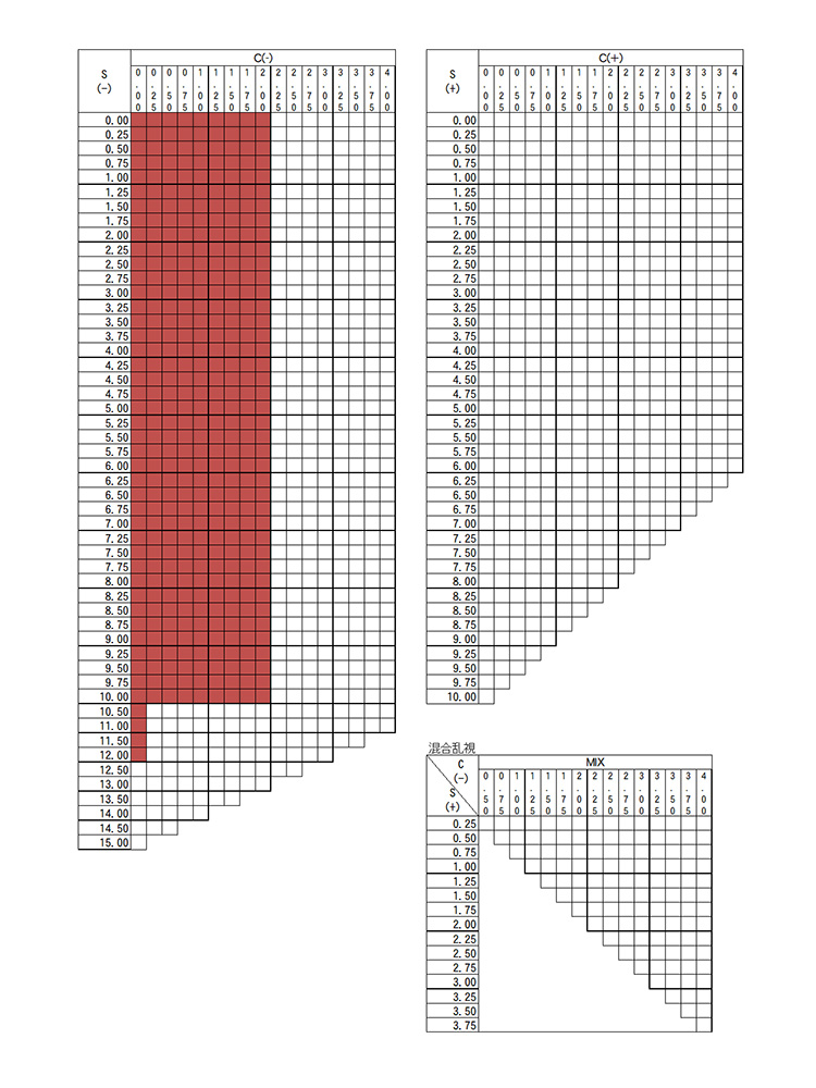 メガネセット用薄型等オプションレンズ :HOYA SL905VS(汚れが付きにくいコート) 1.74 非球面 販売価格 10,000円(税込み) 会員価格 (税込み) 通常価格 (税込み) 在庫 商品コード op7 JANコード レンズデータをお知らせください 下記のフォームに入力する 処方箋を送る 今、お使いのメガネを送る(同度) 来店して検眼する R (右) SPH R (右) CYL(乱視) R (右) AX(乱視軸) L(左) SPH L(左) CYL(乱視) L(左) AX(乱視軸) PD(瞳孔距離) 使用用途 遠用 近用 数量 - + カートに入れる カテゴリー メガネセット用 薄型等オプションレンズ メーカー HOYA ブランド SL905VS 赤くハイライトしてあるところがメーカー在庫範囲になります。それ以外の度数は特注範囲となり、別途+4,000円になります。特注は制作に約1週間かかります。 ツイートする シェアする RECOMMENDEDおすすめアイテム メガネセット用薄型等オプションレンズ :HOYA NL167VS レイガード(汚れが付きにくいコート) 1.67 非球面 12,000円(税込み) メガネセット用薄型等オプションレンズ :HOYA NL16VS レイガード(汚れが付きにくいコート) 1.60 非球面 10,000円(税込み) メガネセット用薄型等オプションレンズ :伊藤光学 メニモ1.74AS ENA(HEVカット)(傷がつきにくいコート) 1.74 非球面 16,000円(税込み) メガネセット用薄型等オプションレンズ :伊藤光学 メニモ1.67AS ENA(HEVカット)(傷がつきにくいコート) 1.67 非球面 9,000円(税込み) メガネセット用薄型等オプションレンズ :伊藤光学 メニモ1.60AS ENA(HEVカット)(傷がつきにくいコート) 1.60 非球面 7,000円(税込み) メガネセット用薄型等オプションレンズ :HOYA SL903VS(汚れが付きにくいコート) 1.67 非球面 5,000円(税込み) メガネセット用薄型等オプションレンズ :HOYA NL174VG-H(傷がつきにくいコート) 1.74 非球面 18,000円(税込み) メガネセット用薄型等オプションレンズ :伊藤光学 アンテリオールENA(傷がつきにくいコート) 1.74 非球面 12,000円(税込み) メガネセット用薄型等オプションレンズ :HOYA NL167VT-H(傷がつきにくいコート) 1.67 非球面 8,000円(税込み) メガネセット用薄型等オプションレンズ :HOYA NL167VS(汚れが付きにくいコート) 1.67 非球面 6,000円(税込み) メガネセット用薄型等オプションレンズ :伊藤光学 レシエンテ ENA(傷がつきにくいコート) 1.67 非球面 5,000円(税込み) メガネセット用薄型等オプションレンズ :伊藤光学 アボナールAS ENA(傷がつきにくいコート) 1.60 非球面 3,000円(税込み) メガネセット用薄型等オプションレンズ :HOYA SL982VS(汚れが付きにくいコート) 1.60 非球面 0円(税込み)
